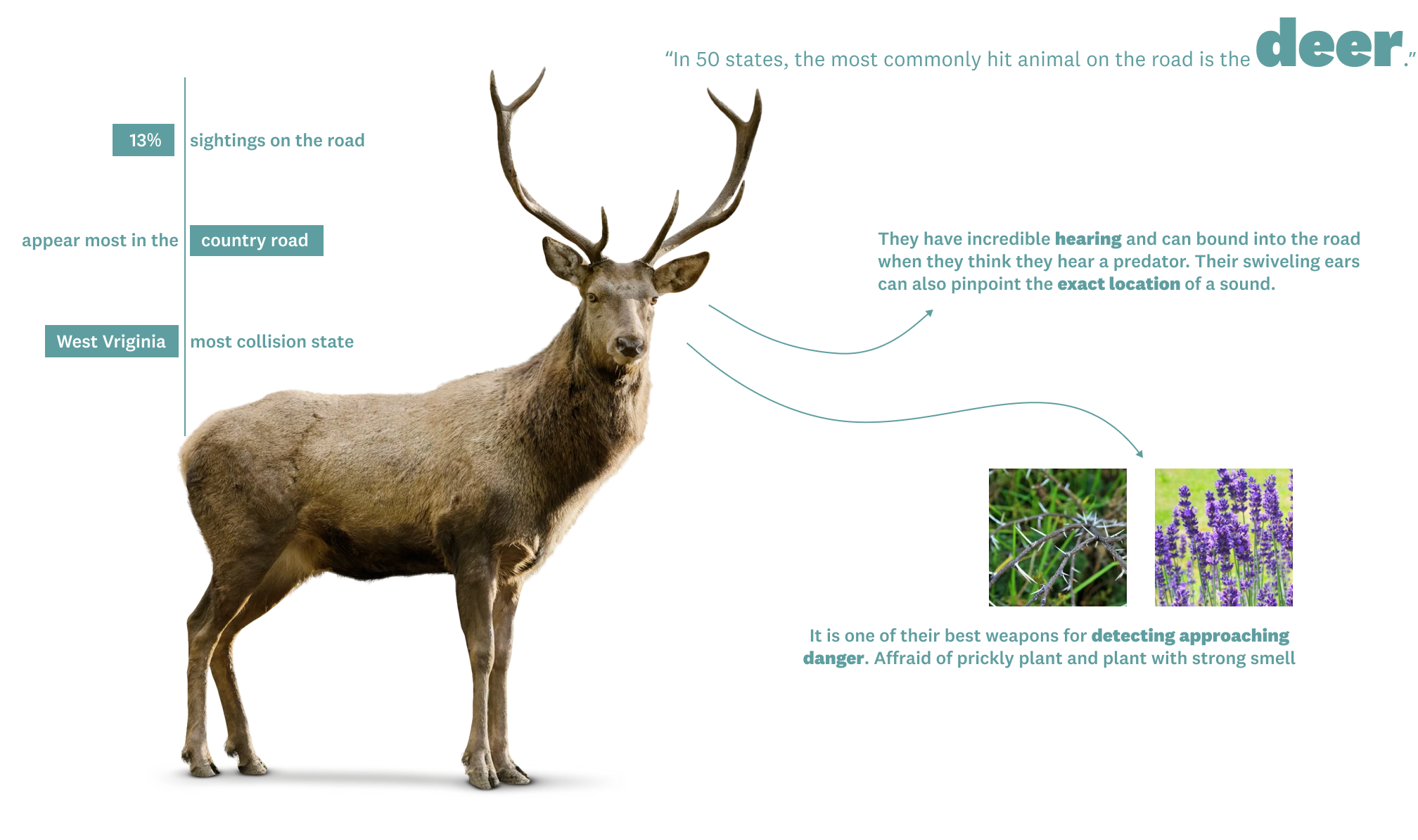 After researching, I analyzed the deer's sensitivity to different media, and tried to explore the possibility of combining the recognition of safety distance and vehicle volume with sending the warning to deers.
