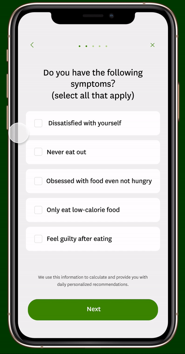 I designed a new daily routine record application. The pain point of eating disorder patients is recording daily food intake in the long-term treatment. Through setting long-term goal, giving encouragement, tracking progress and even giving help from local therapists, these new features give patients a chance to build a better relationship with food and a sense of controllability for themselves.