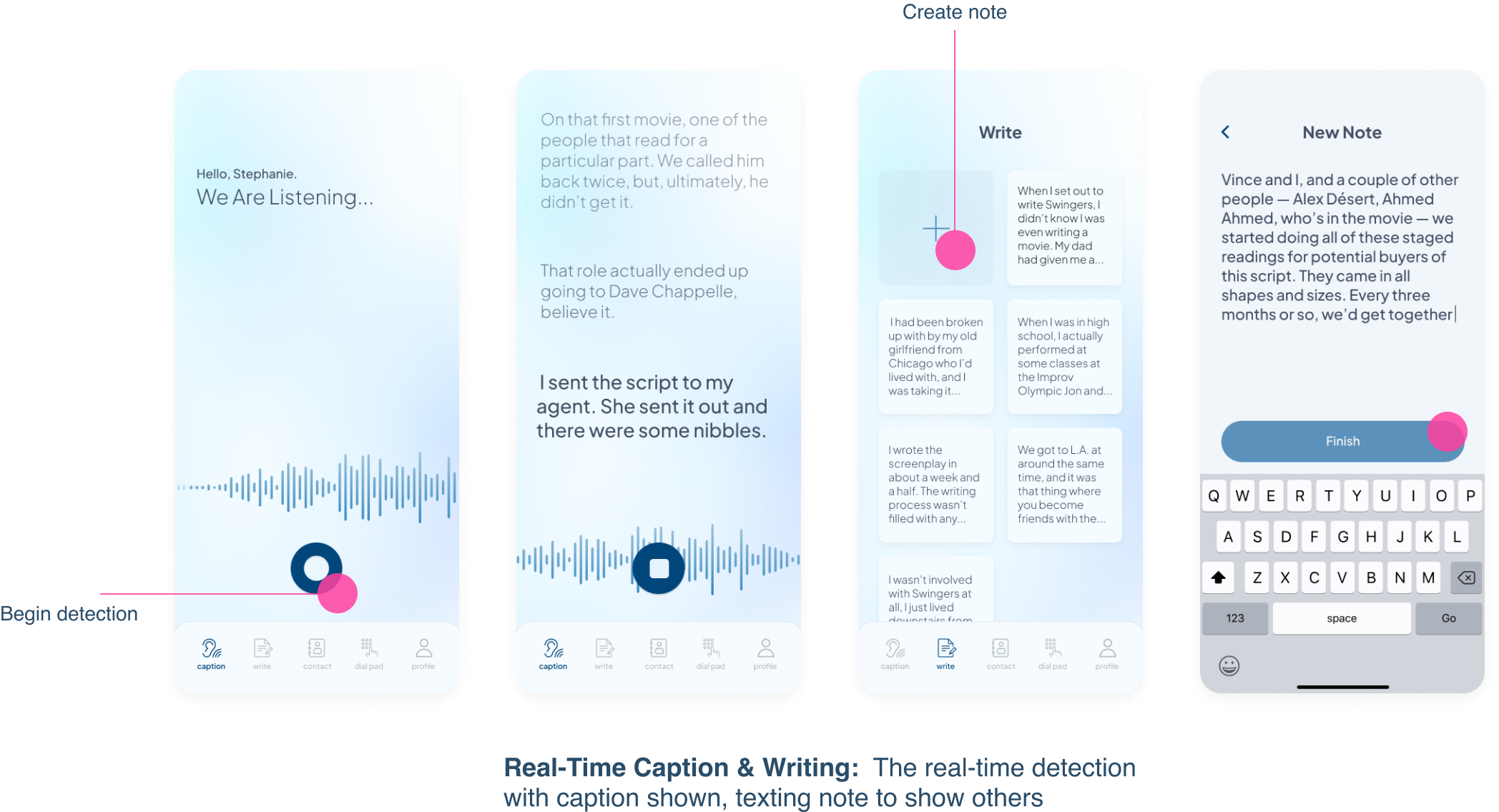 After researching, I found existing products focus on voice detection and translation, text typing, and sign language. However, how can a deaf person live without thr product? In addition to being a translation tool, language rehabilitation should be added to the product to further improve the communication status of the hearing impaired with the outside world.