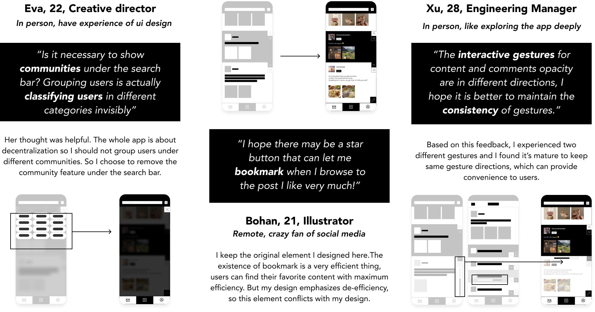 A.I. algorithm is embedded in social media. The entire algorithm logic and the social media interaction experience are very efficient and guiding, which makes people more aggressive on social media and does not inspire meaningful discussions. In response to this phenomenon, I explored different possibilities to make users explore an app by themselves with more openness and autonomy.